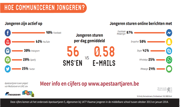 Wie vandaag met jongeren omgaat, kan er niet om heen: het sociale leven van tieners speelt zich verstrengeld af in de on- en offline wereld. ICT bekleden een prominente rol in hoe zij met elkaar omgaan en communiceren. Afspraakjes maken, spellen spelen, schooltaken uitvoeren, foto’s delen, vriendschappen onderhouden, intimiteit delen, ruzies en conflicten uitvechten, pesten, … dat alles gebeurt vandaag via ICT.