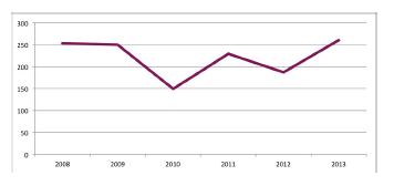 Wat betreft het gebruik van uitzendkrachtenblijft het redelijk stabiel met enkele schommelingen tussen 2008 en 2013. Samen met de opkomst van kleine ondernemingen kunnen we stellen dat er meer en meer geopteerd 2/5 wordt voor flexibele tewerkstellingsvormen los van grotere structuren.