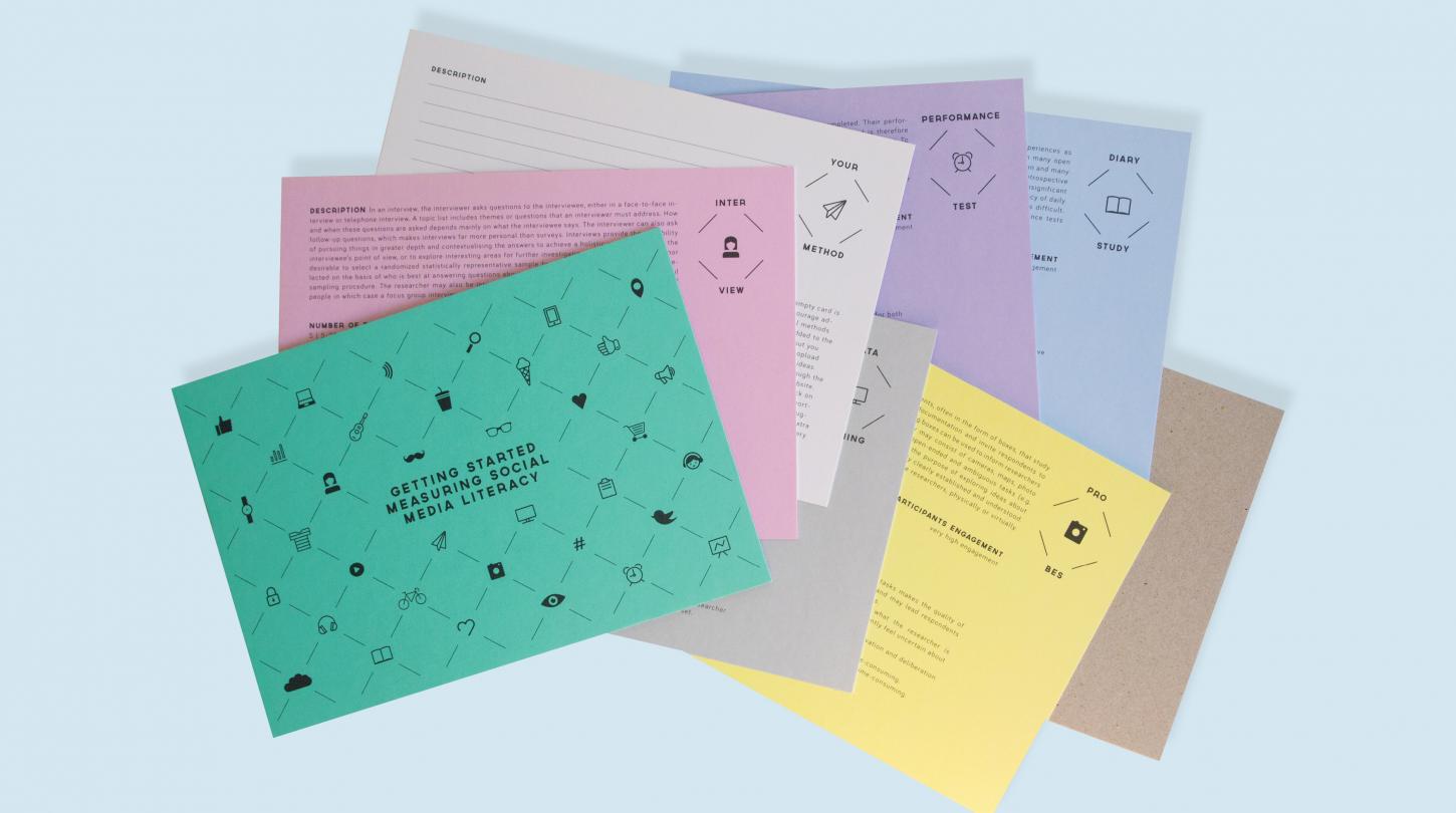 Om aan deze uitdagingen tegemoet te komen, creëerde iMinds-MICT-UGent binnen het EMSOC IWT-SBO project (User Empowerment in a Social Media Culture) de EMSOC toolkit. Hierin wordt op 14 steekkaarten een beeld gegeven van verschillende (kwalitatieve en kwantitatieve) methoden die gebruikt kunnen worden om sociale mediageletterdheid te meten. De toolkit zit heel simpel in elkaar: op elk van de methodekaarten wordt de methode kort uitgelegd en worden voor- en nadelen ervan opgelijst. Aan de achterkant staat uitgelegd hoe de methode specifiek toegepast kan worden op het meten van sociale mediageletterdheid en staan enkele voorbeeldindicatoren. In een ideale situatie wordt een combinatie van methoden gebruikt, waardoor de tekortkomingen van de ene methode kunnen opgevangen worden door de voordelen van de andere en een beter totaalbeeld van sociale mediageletterdheid kan verkregen worden.