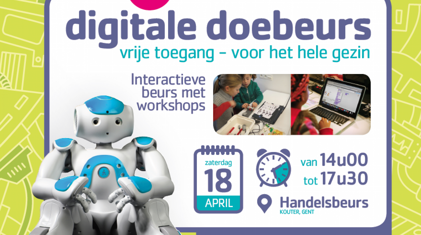 Op 18 april 2015 trapt Digitaal.talent@gent / Digipolis de Digitale Week in gang met een gratis publieksevent in de Handelsbeurs: de Digitale Doebeurs. Iedereen is welkom om kennis te maken met nieuwe en creatieve technologieën en ICT-oplossingen.