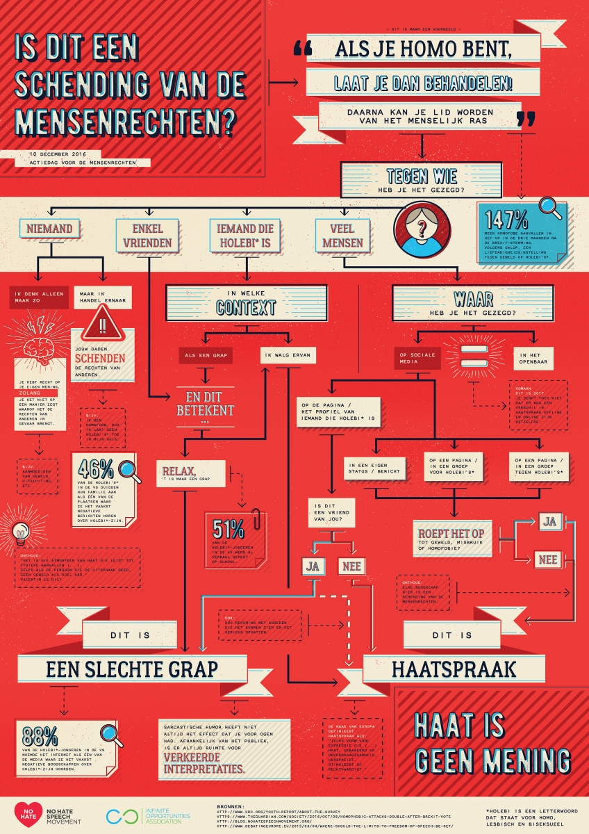 Deze infographic van de Infinite Opportunities Association (Bulgarije) legt uit hoe een (online) uitspraak een schending van de mensenrechten wordt.